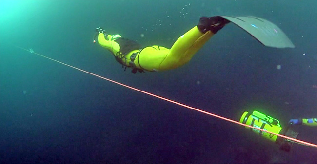 I preparativi erano iniziati l’8 marzo dello stesso anno, quando lo staff dell’Xtreme Blue Team Asd e dello Sport Diver avevano iniziato a praticare gli 8 fori necessari, negli oltre 50 centimetri di ghiaccio che ricoprono la superficie del lago. Forse a causa di un po’ di emozione, la diciannovenne croata, ha sbagliato ad impostare un ritmo eccessivamente veloce e si è ritrovata a dover rinunciare dopo aver percorso “soli” 75 metri.